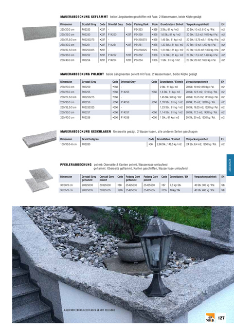 dimension 30/30/3 cm 35/35/3 cm Crystall grey geflammt Z0325030 Z0325035 Crystall grey poliert Z0325530 Z0325535 Code padang dark geflammt Z5425030 Z5425035 padang dark poliert Z5425530 Z5425535 Code grunddaten / eh 7,5 kg/ Stk. 10 kg/ Stk. verpackungseinheit 40 Stk; 300 kg / Pal. 40 Stk; 400 kg / Pal. eh Stk Stk
