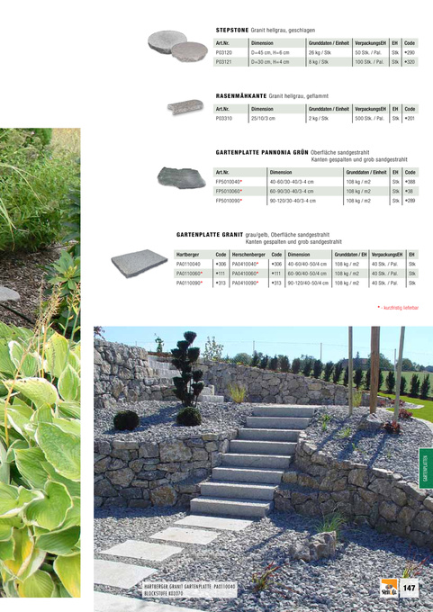 Hartberger PA0110040 PA0110060* PA0110090* Code Herschenberger PA0410040* PA0410060* PA0410090* Code Dimension 40-60/40-50/4 cm 60-90/40-50/4 cm 90-120/40-50/4 cm Grunddaten / EH 108 kg / m2 108 kg / m2 108 kg / m2 VerpackungsEH 40 Stk. / Pal. 40 Stk. / Pal. 40 Stk. / Pal. EH Stk Stk Stk