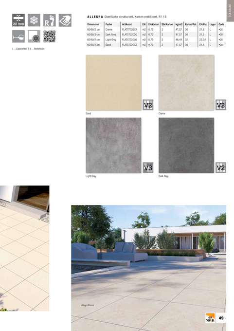 Dimension 60/60/2 cm 60/60/2 cm 60/60/2 cm 60/60/2 cm Farbe Creme Dark Grey Artikelnr. FLATST020CR FLATST020DG EH m2 m2 EH/Karton Stk/Karton kg/m2 Karton/Pal. EH/Pal. Lager 0,72 0,72 2 2 47,57 47,57 30 30 32 10mm 30 21,6 21,6 23,04 21,6 L L L L Code