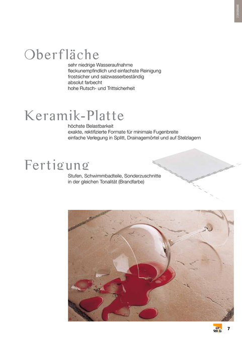 sehr niedrige Wasseraufnahme fleckunempfindlich und einfachste Reinigung frostsicher und salzwasserbeständig absolut farbecht hohe Rutsch- und Trittsicherheit